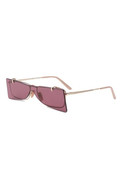 У этих очков есть секрет: поверх прозрачных антибликовых линз – откидная насыщенного бордового оттенка (она обеспечивает 100% защиты от вредных ультрафиолетовых лучей). Золотистую оправу изготовили из прочного легкого сплава: он не вызывает аллергию, поэтому в таком аксессуаре будет комфортно.