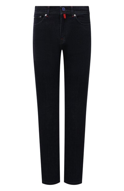 Зауженные джинсы с пятью карманами подойдут для прохладной погоды. В слегка эластичный хлопковый деним добавили кашемир. Ширинку дополнили брендированным ярлыком, переднюю шлевку выделили вышитым логотипом, сзади на поясе расположили фирменный патч.