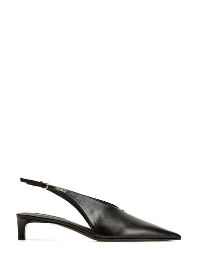 Оригинальные туфли-слингбэки от Jil Sander созданы вручную из мягкой телячьей кожи с легким эффектом полировки. Модель с заостренным мыском и треугольным вырезом дополнена регулируемым ремешком для комфортной посадки. Невысокий миниатюрный каблук kitten heel завершает дизайн.