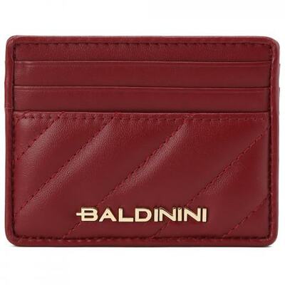 Картхолдер из кожи бордового цвета от Baldinini. Мини-картхолдер позволит взять с собой самые необходимые карты и не займет много места в сумочке или клатче. Аксессуар выполнен из натуральной кожи с косой строчкой. Три слота для карт спереди и сзади. О принадлежности к бренду говорит фирменный логотип спереди.