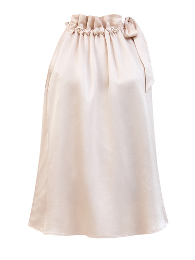 Элегантная блуза без рукавов от Peserico выполнена в жемчужно-пудровом оттенке из металлизированной ткани на основе древесных волокон вискозы и шерсти. Легкая струящаяся фактура подчеркивает каждое движение. Гладкий материал в сочетании с воротом-халтер на завязках в тон создает образ в присущем бренду женственном стиле. Сделано в Италии.