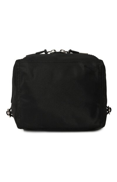 Сумку Pandora с регулируемым плечевым ремнем, украшенным светоотражающей надписью, сшили из нейлона. Отделку выполнили из телячьей кожи. Внутри основного отделения и на задней панели разместили по карману.