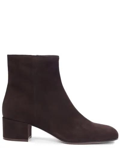 -Коричневые ботильоны из бархатистой замши от GIANVITO ROSSI.