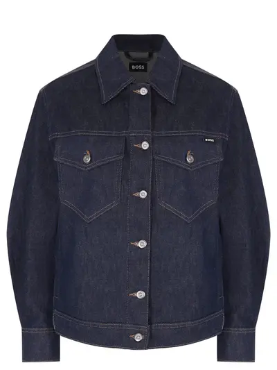 -Синяя куртка из хлопкового денима от BOSS BLACK.
