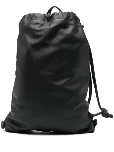 black calf leather grained texture single top handle two adjustable shoulder straps side zip-fastening pocket debossed logo to the rear main compartment internal zip-fastening pocket full lining gold-tone hardware top drawstring fastening
