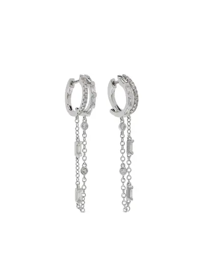 18kt white gold polished finish huggie hoop design dangle design cable-link chain 0.65 carats white diamonds claw/prong setting and bezel setting round cut diamonds bar setting baguette cut diamonds lever fastening for pierced ears These earrings come as a pair. This piece comes complete with a protective dust bag. Normal everyday use and external agents may reduce the lustre of gemstones and gold surfaces. To maintain, use specific, non-abrasive products specially meant for cleaning jewellery.