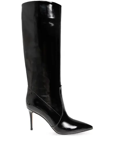 jet black leather high-shine finish pointed toe slip-on style branded leather insole 95mm stiletto heel leather sole