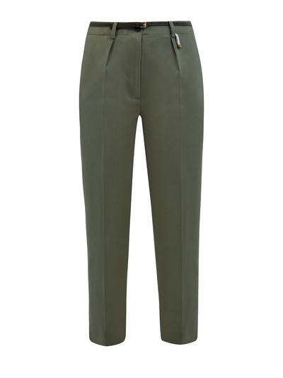 Женские брюки от Lorena Antoniazzi выполнены из мягкого габардина на основе хлопка и лиоцелла, эластичные волокна в составе облегчают уход за изделием. Свободный, слегка зауженный укороченный крой с защипами идеально подходит для создания повседневных образов в стиле leisure, съемный ремень из гладкой кожи обеспечивает посадку по фигуре. Детали: прорезные карманы, трикотажная деталь, символика бренда на спинке. Сделано в Италии.