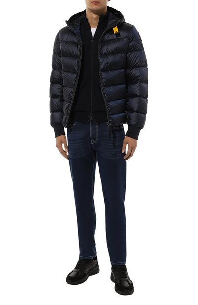 Бомбер Pharrell с парными боковыми и внутренними карманами сшили из непродуваемой саржи с водоотталкивающей пропиткой. Под подкладкой из тафты спрятали утиный пух с плотностью набивки 740 F.P. Манжеты и низ дополнили эластичными вставками, рукав — брендированным патчем. На воротнике-стойке, переходящей в капюшон, расположили ремешок на кнопке.