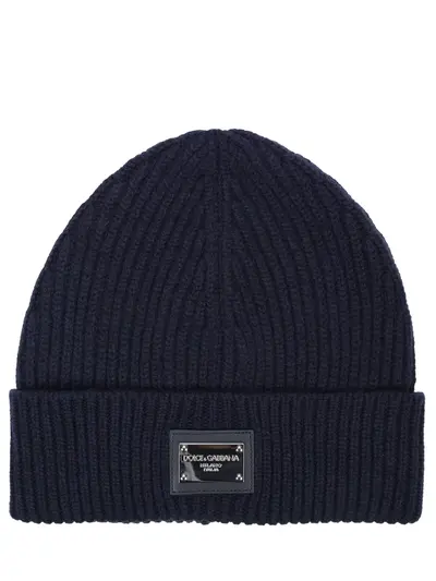 -Синяя вязаная шапка-бини из смесовой шерсти от DOLCE&GABBANA.