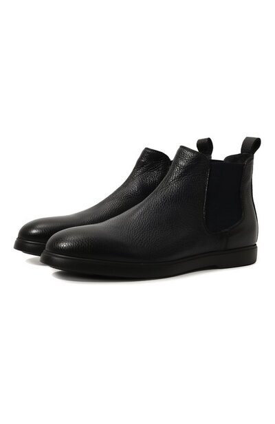Лаконичные челси с миндалевидным мысом изготовлены из зернистой оленьей кожи. Верх с эластичными боковыми вставками сбоку соединен с резиновой подошвой по технологии Blake, отвечающей за легкость и гибкость.