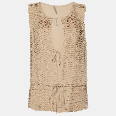 Bottega Veneta Beige Silk Front Tie-Up Top S 1019734 (бежевый, lpn26819775)