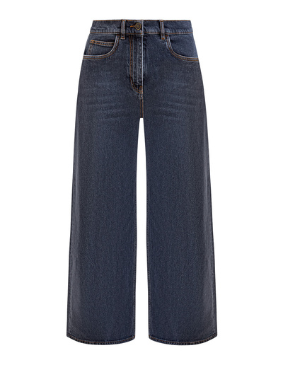 Etro Джинсы Wide Leg с контрастной прострочкой и нашивкой из кожи 251271 (синий, lpn26823793)