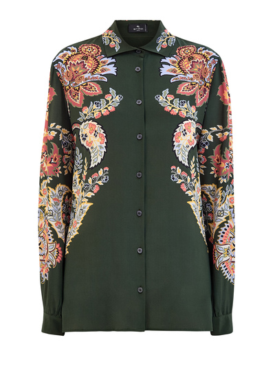 Etro Блуза из гладкого шелка с флористическим мотивом пейсли 251247 (зелёный, lpn26823806)