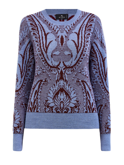 Etro Джемпер из жаккардовой шерсти с интарсийным узором пейсли 251270 (голубой, lpn26823807)