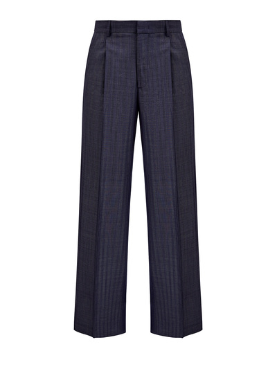 Etro Шерстяные брюки в жаккардовую полоску с фактурными защипами 251237 (синий, lpn26823812)