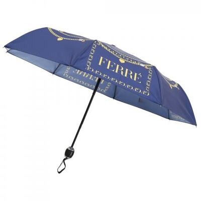 Зонт от Ferre Milano. Зонт в синем цвете с фирменным принтом - универсальной аксессуар, который подойдет к любому образу и ситуации. У зонта комбинированная ручка из пластика и металла с кнопками управления, дополненная удобной петлёй на запястье. В сложенном виде зонт застёгивается на кнопку. В комплекте чехол в цвет. В сложенном виде зонт занимает совсем немного места благодаря компактным размерам - всего 28 см.