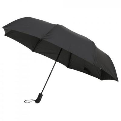 Чёрный складной зонт от Baldinini. Аксессуар в строгом стиле, который будет уместен как в городском, так и в деловом образе. Зонт закрывается и открывается с помощью кнопок, расположенных на ручке. Аксессуар можно носить на запястье, используя шнурок-петлю. В комплекте чехол из ткани в цвет зонта, украшенный фирменным логотипом.