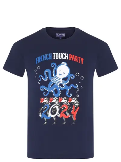 -Темно-синяя футболка из мягкого хлопка от VILEBREQUIN. -Модель прямого кроя с короткими рукавами, круглым вырезом горловины и принтом-логотипом на груди. -Футболка станет базой для повседневных аутфитов с шортами или легкими летними брюками.