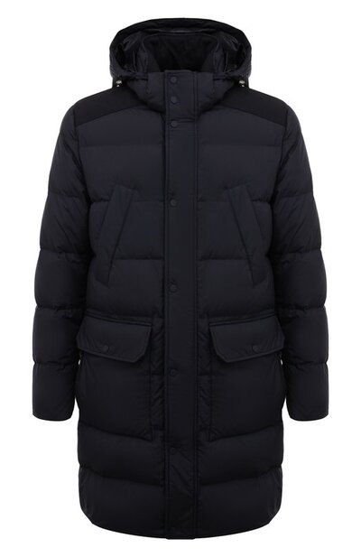 Пуховик из влагоотталкивающего нейлона утеплили гусиным пухом, обработанным по технологии Re-Goose Down. Стеганая модель со съемным регулируемым капюшоном, четырьмя внешними и одним внутренним карманами застегивается молнией, скрытой штормовой планкой.