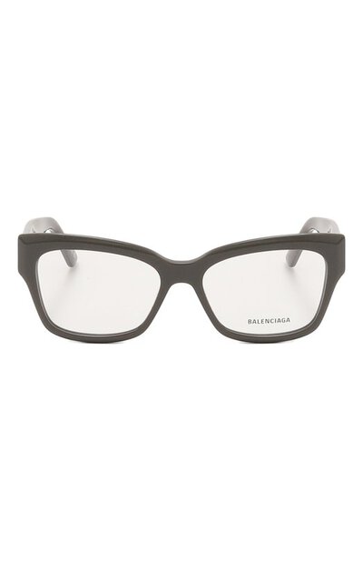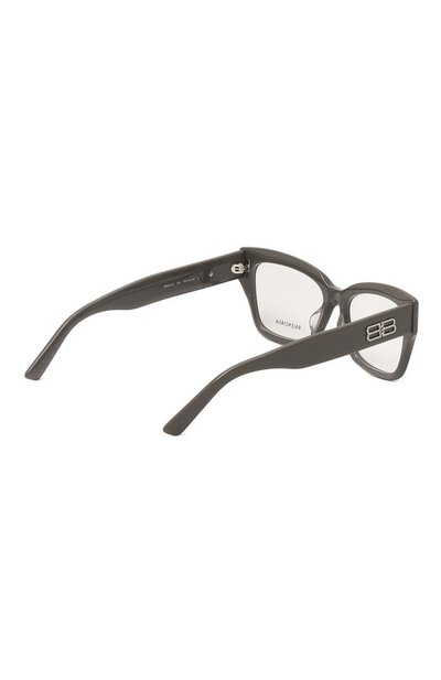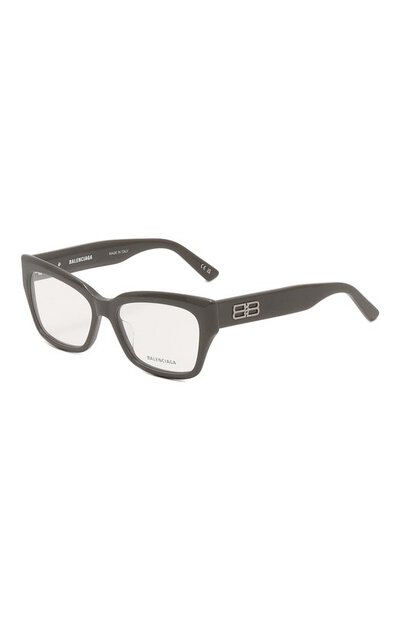 Для изготовления серой оправы с крупными квадратными рамками использовали легкий ударопрочный ацетат, который не боится царапин и долго сохраняет глянцевый блеск. Широкие дужки декорировали блестящей рельефной монограммой BB из полированного серебристого металла.