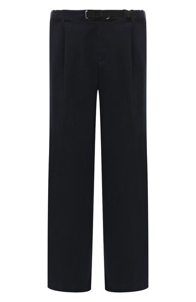 Прямые брюки со стрелками и четырьмя врезными карманами сшиты из матовой хлопковой саржи стрейч. Модель с классической посадкой дополнена узким эластичным поясом с пряжками.