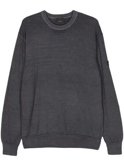 blue-grey wool knitted construction fine knit mélange effect crew neck drop shoulder long sleeves logo patch at the sleeve ribbed cuffs and hem straight hem