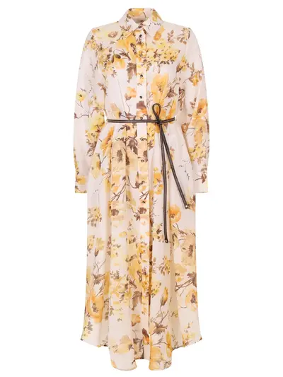 -Бежевое платье с цветочным мотивом из легкого дышащего рами от ZIMMERMANN.