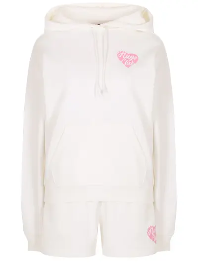 -Худи свободного силуэта со спущенной линией плеча, длинными рукавами, эластичными манжетами и поясом, капюшоном на кулиске, накладным карманом-кенгуру и логотипом бренда на груди.