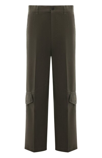 Брюки из хлопкового габардина дополнили карманами по бокам, сзади и спереди в области коленей. Свободные карго наши стилисты предлагают носить с футболкой, кардиганом и кедами.