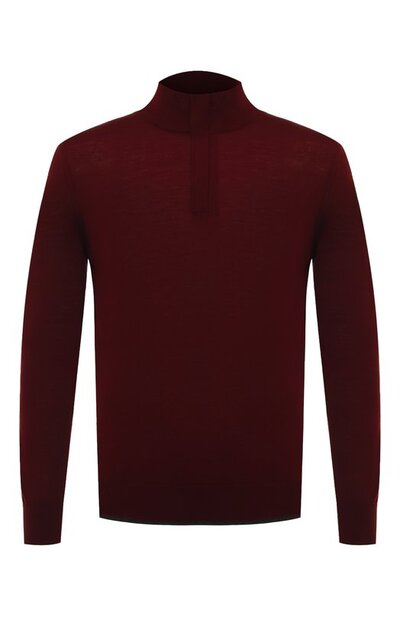 Джемпер с узким кантом на рифленом поясе связали из мериносовой шерсти. Чтобы модель с высоким воротом было легче надевать и снимать, предусмотрели короткую потайную молнию спереди.