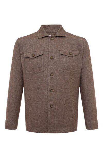 Рубашка прямого кроя сшита из плотного фактурного хлопка. Лаконичная модель с отложным воротником дополнена накладными карманами с клапанами. Изделие, застегивающееся пуговицами, можно носить не только сольно, но в качестве верхнего слоя с футболкой или водолазкой.