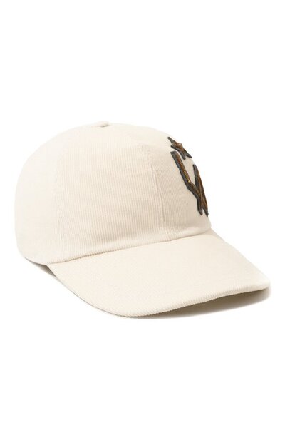 Бейсболку выполнили из слегка эластичного хлопкового вельвета. На тулье — войлочные аппликации в виде звезды и монограммы LA, подчеркнутые вышивкой. Модель застегивается сзади регулируемым ремешком.