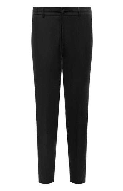 Зауженные брюки Spiaggia сшили из шерстяного габардина. Модель с регулируемым эластичным поясом-кулиской дополнили тремя карманами.