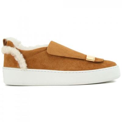 Кроссовки из замши в коричневом цвете от Sergio Rossi. Эти утеплённые кроссовки станут вашей любимой обувью для холодного времени года. Кроссовки выполнены из мягкой замши, с подкладкой и стелькой из натурального меха. Выразительная металлическая пластина с логотипом золотистого цвета привносит изысканность в ваш образ. Дизайн завершает резиновая подошва белого цвета.