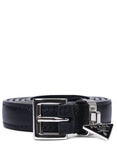 -Узкий черный ремень из текстурированной кожи от PRADA.