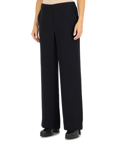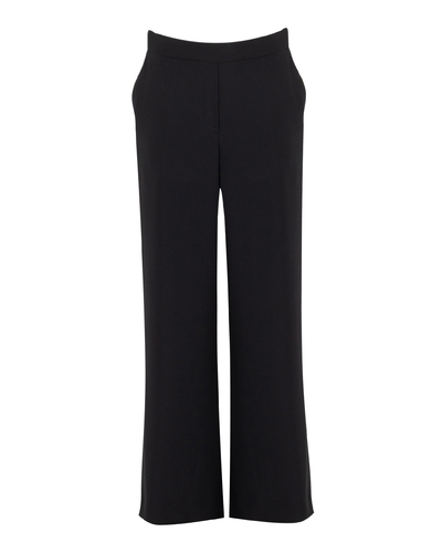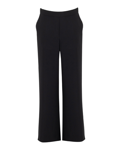 Брюки P.A.R.O.S.H. из тонкого крепа черного цвета. Модель прямого силуэта с широкими брючинами и комфортной посадкой на талии с эластичной линией пояса.