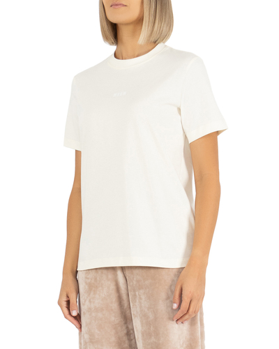Белая футболка прямого кроя из мягкого хлопка идеально впишется в повседневный гардероб и станет отличной базой для любых аутфитов. Минималистичный фасон футболки спереди дополнили неприметным в тон модели логотип и большой принт на спине.