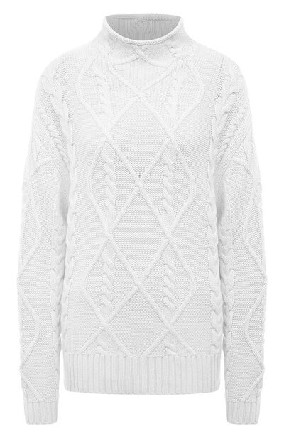 Свободный свитер со спущенной линией плеч и широким цельнокроеным воротом – отличная основа повседневного образа для прохладной погоды. Модель с фактурными арановыми узорами связали из мягкой хлопковой пряжи, утепленной нежным кашемиром.