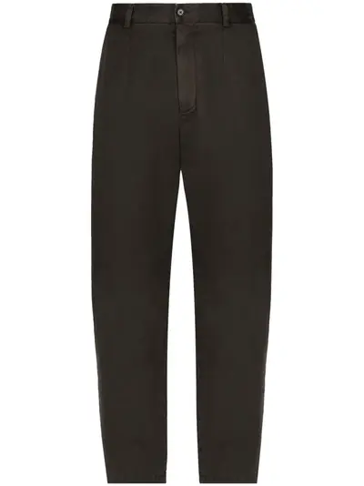 dark grey cotton garment dyed appliqué logo belt loops concealed fly and button fastening slip pockets to the sides two rear welt pockets tapered leg