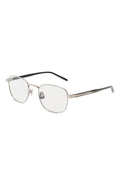 Оправа из серебристого металла будет органично смотреться и на мужском, и на женском лице. Дужки модели с регулируемыми носовыми упорами дополнили деталями из ацетата и украсили выгравированным логотипом.