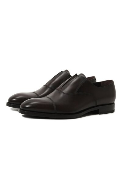 Оксфорды из гладкой кожи органично дополнят классический костюм. Модель с миндалевидным носком украсили фактурными швами. Вместо традиционной шнуровки на союзке разместили эластичную вставку.