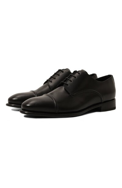Лаконичные дерби идеально впишутся в офисный комплект. Изделие выполнили из гладкой кожи с глянцевым блеском и поставили на тонкую прорезиненную подошву. Союзку украсили фирменным объемным швом.
