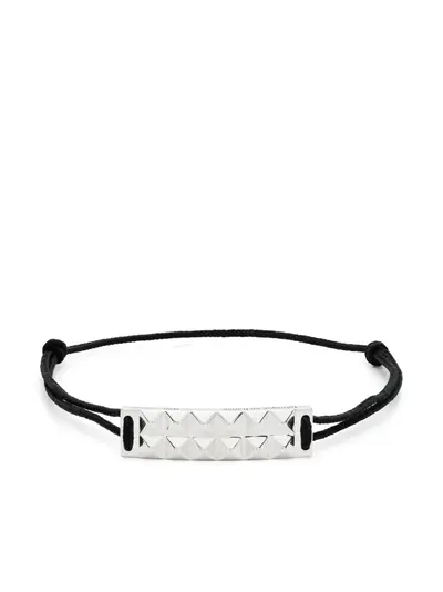 black silver-tone sterling silver spiked stud design cord band adjustable fit brushed and polished finish Hallmarked in the United Kingdom at the London Assay Office.