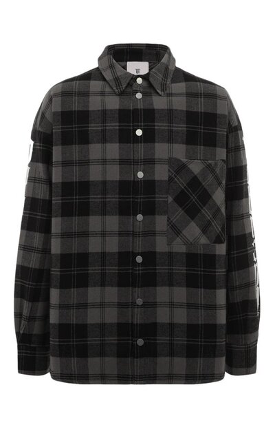 Куртка-рубашка из фактурной хлопковой фланели в клетку тартан органично дополнит повседневные образы с джинсами и футболками. Модель, застегивающуюся на серебристые кнопки, дополнили крупным накладным карманом. Рукава и спинку изделия украсили контрастным принтом с надписью Nobrand.