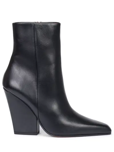 -Черные ботильоны из натуральной мелкозернистой кожи от PARIS TEXAS. -Модель с вытянутым мысом, голенищем на молнии, толстым устойчивым каблуком, внутренней отделкой из натуральной кожи.