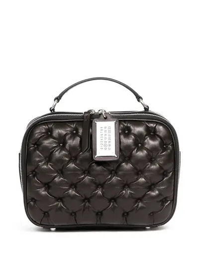 black lambskin leather tag padded design silver-tone hardware faux-leather and chain-link shoulder strap single top handle two-way zip fastening main compartment internal zip-fastening pocket internal card slot