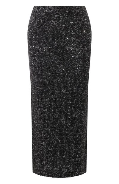 Зауженная миди-юбка полностью покрыта миниатюрными пайетками. Элементы закреплены на эластичном трикотаже с добавлением шерсти. Модель составит элегантный комплект с лаконичным базовым топом, но наши стилисты предлагают дополнить ее поло с похожим декором.