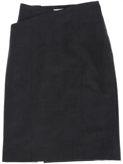 circa 1980s dark grey wool off-centre front buckle fastening side overlapping panel front slit full lining straight hem mid-length Condition: GOOD. This previously owned and used item is in good condition with minimal signs of use. This may include fading of material or plating and scratches.