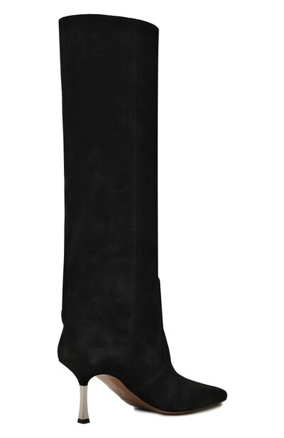 Сапоги Bettina с зауженным мысом одинаково хорошо сочетаются и с юбкой, и с облегающими джинсами: ширина голенища позволяет заправить в него брючины. Модель из фактурной замши дополнили металлической шпилькой средней высоты.